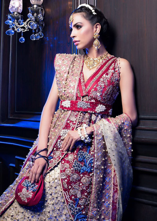 Zardozi, kora dabka, pearls, stones, and extensive gota work intricately applied across all components.