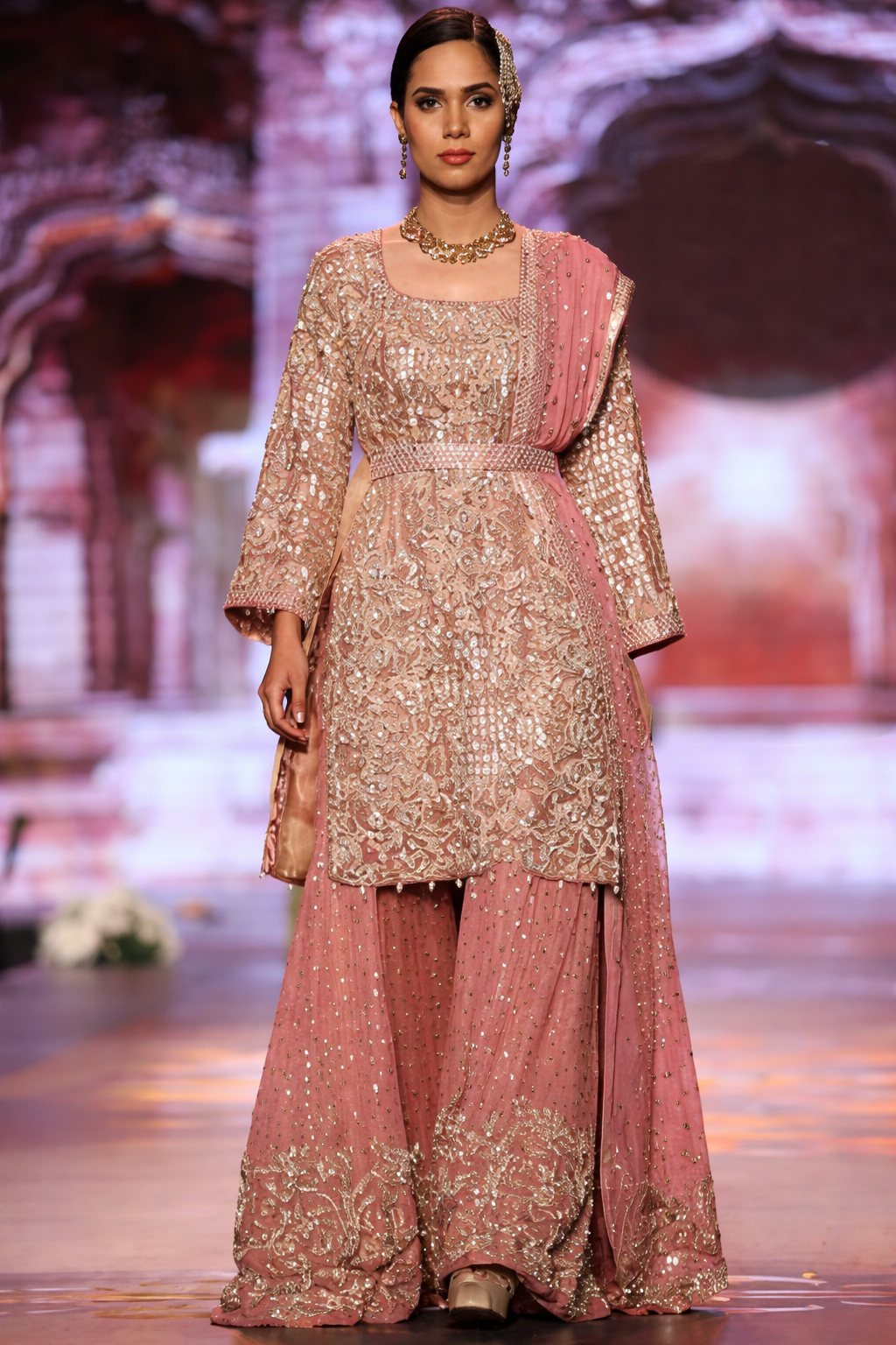 Candy Pink Embellished Chiffon Sharara Ensemble