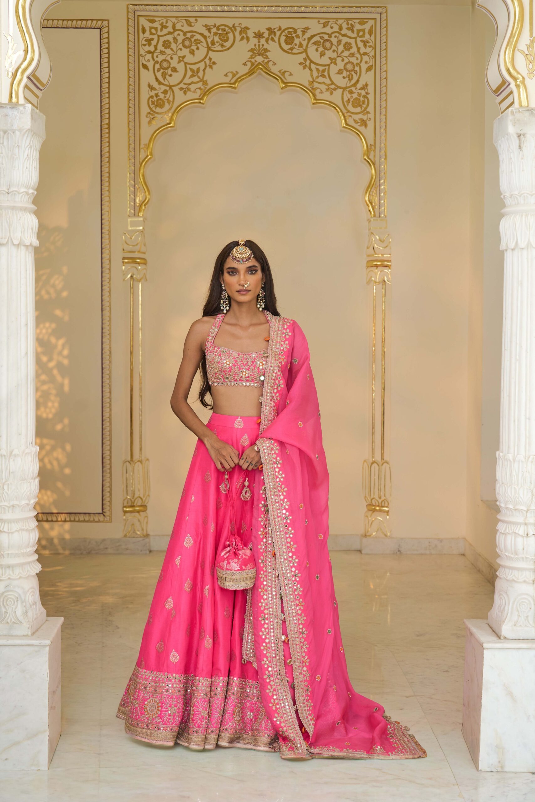 Raspberry Rose Gold Banarasi Mirror Bridal Lehenga Ensemble