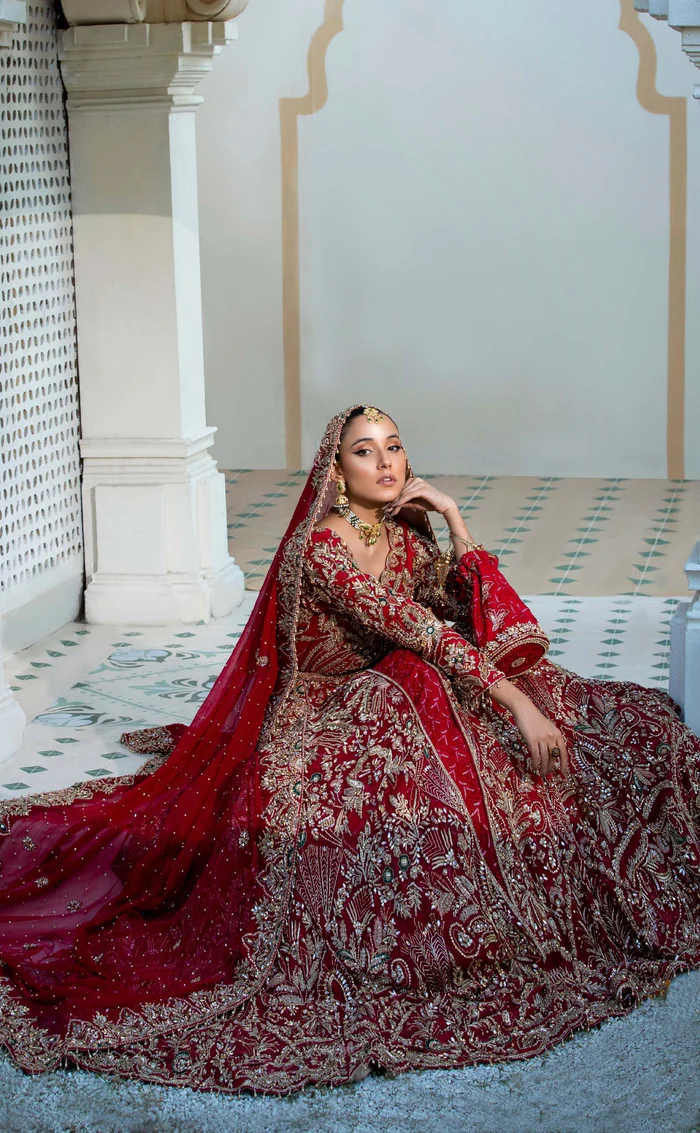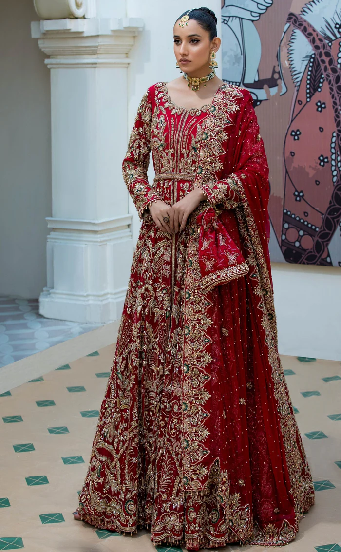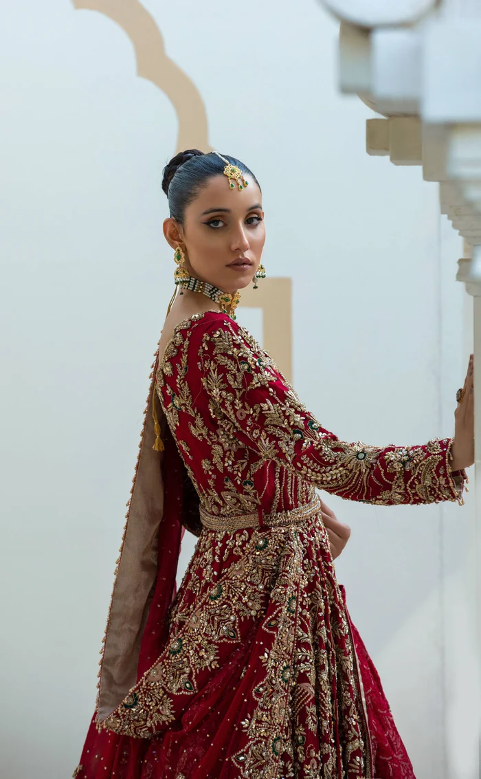 The gown and dupatta are crafted from premium-quality fabrics selected to support detailed embroidery while ensuring graceful movement and comfort.