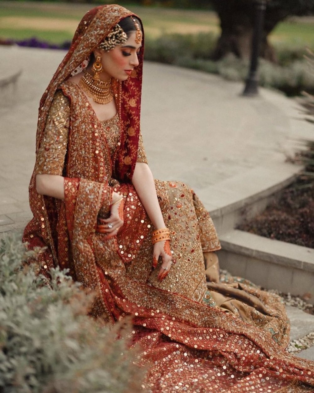 Heavy use of Tilla (metallic thread) work, Zari, Zardozi, and fine sequin detailing, creating high-density, traditional patterns with a deep, historical aesthetic.