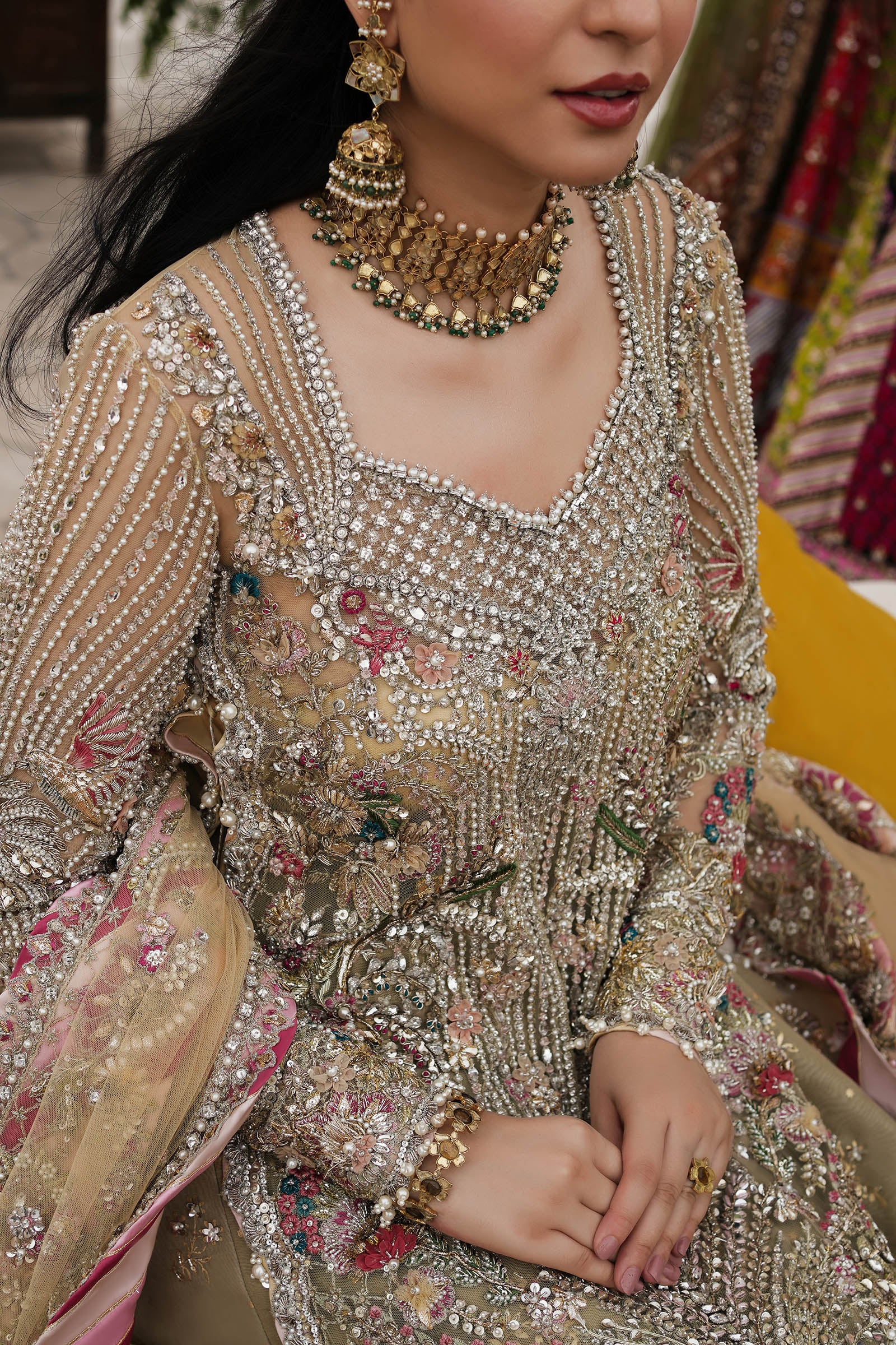 A coordinated dupatta may be styled to complement the ensemble, enhancing its ethereal charm while maintaining visual harmony with the intricate detailing.