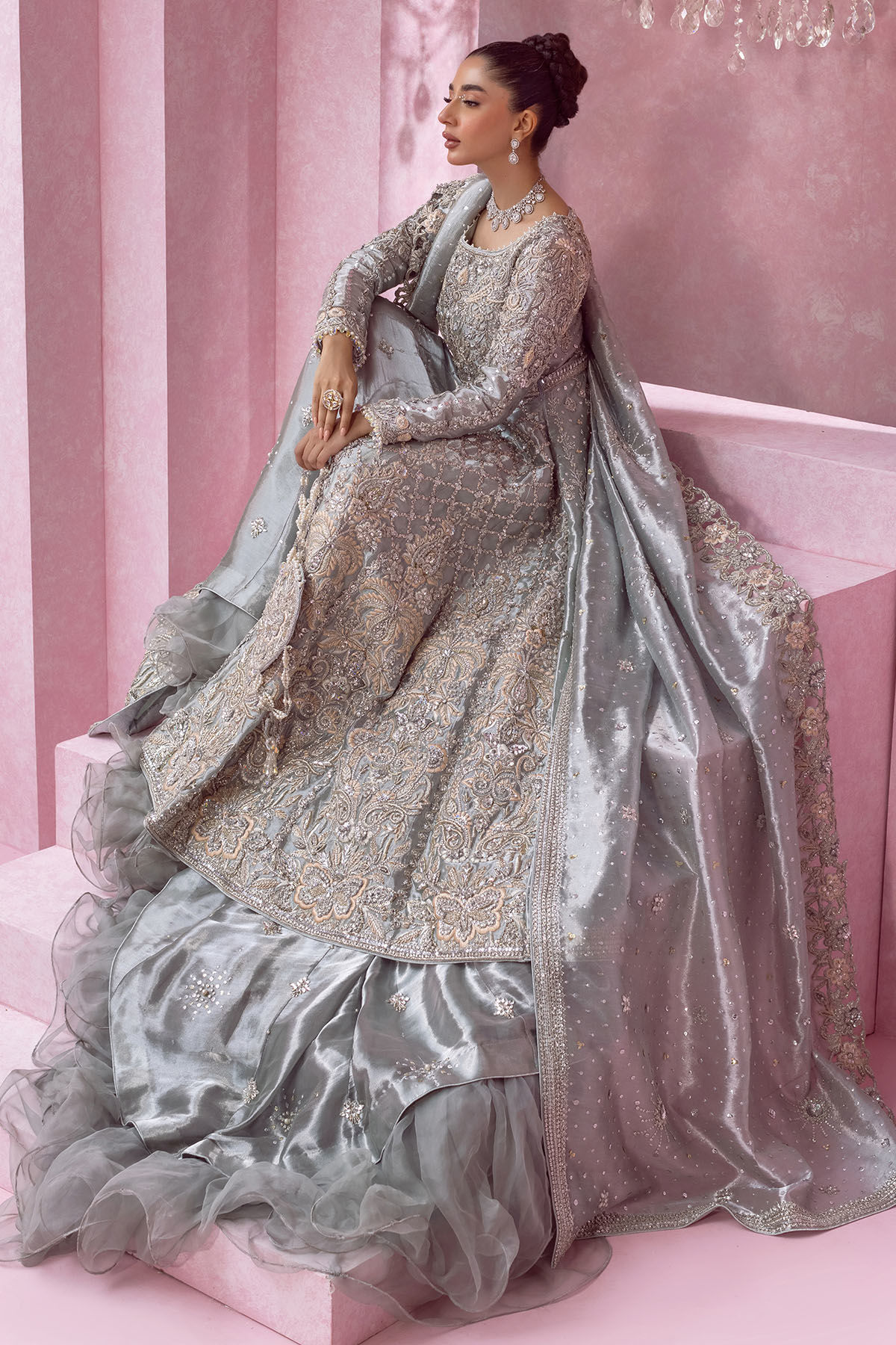 Selena captures a regal aura infused with celestial charm, timeless tradition, and exquisite craftsmanship — a breathtaking ensemble designed to celebrate your grandeur on life’s most joyous occasions.