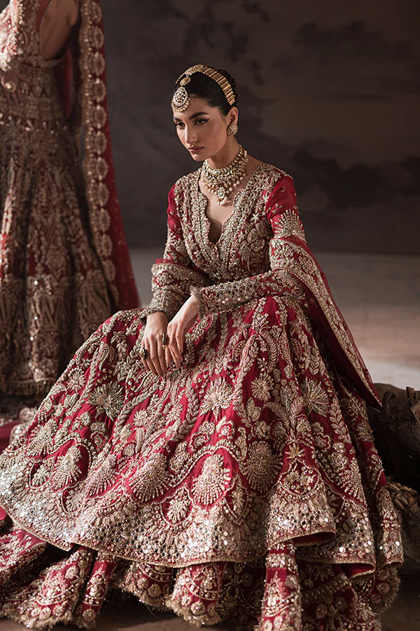 Handcrafted using sheesha, resham, marori, dabka, and intricate detailing, celebrating the artistry of traditional bridal embellishment.