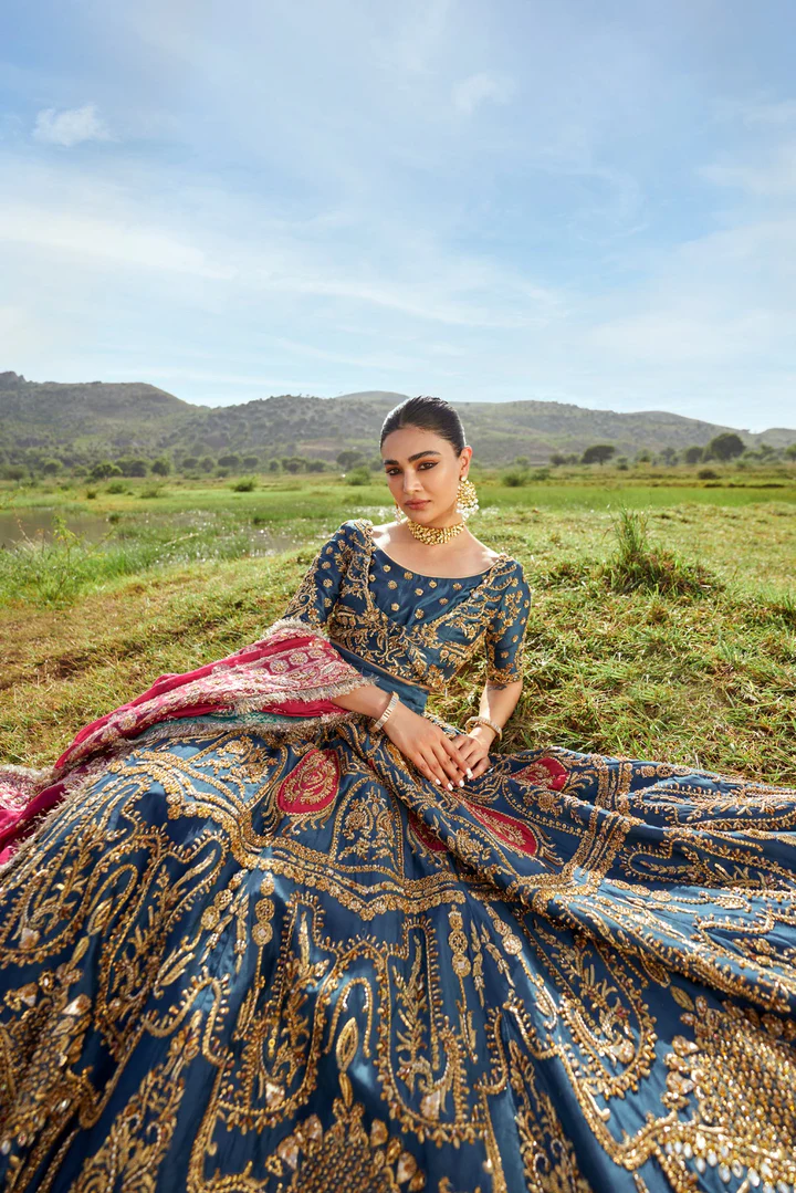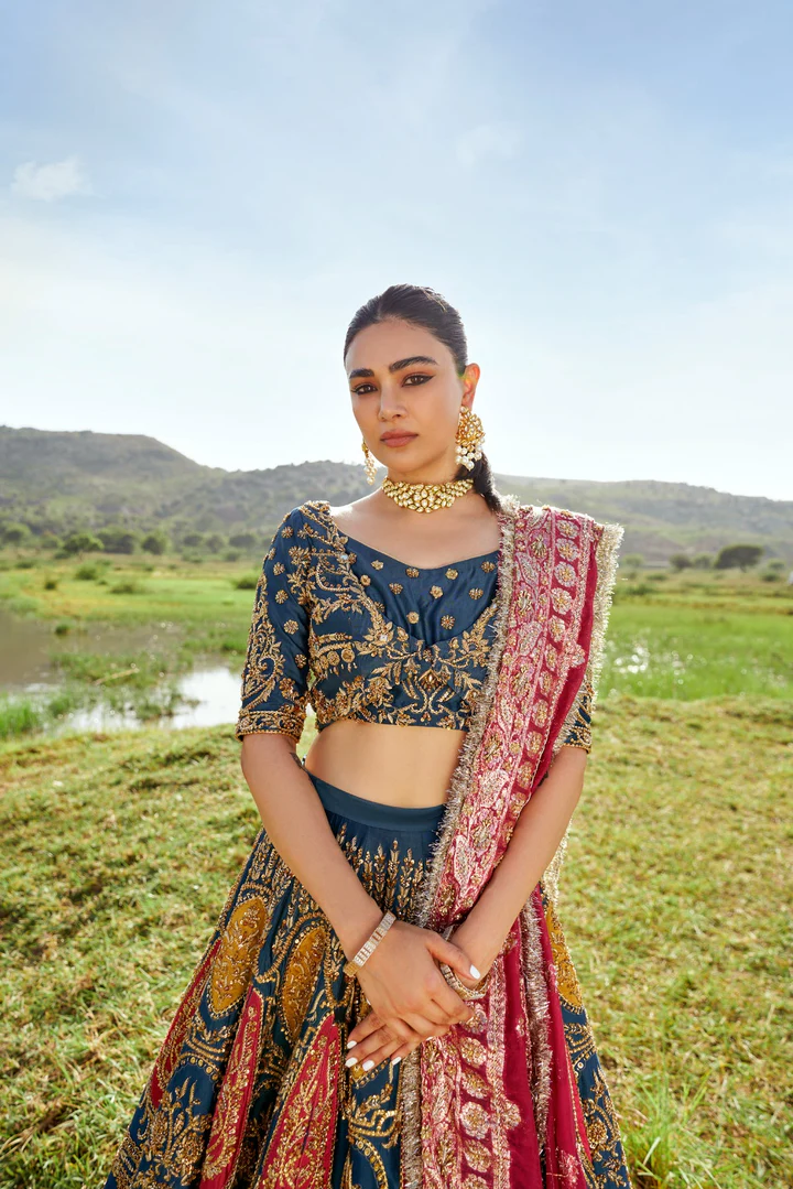 Admiral Blue Choli and Lehenga with Fuchsia Pink Dupatta