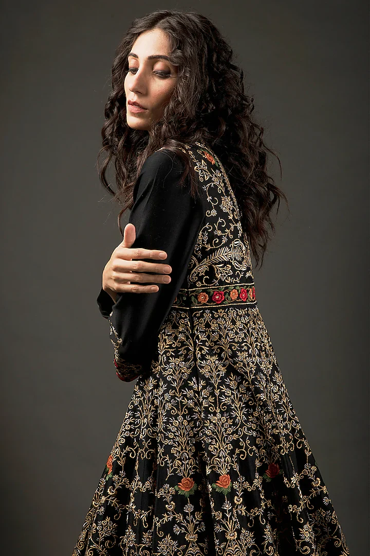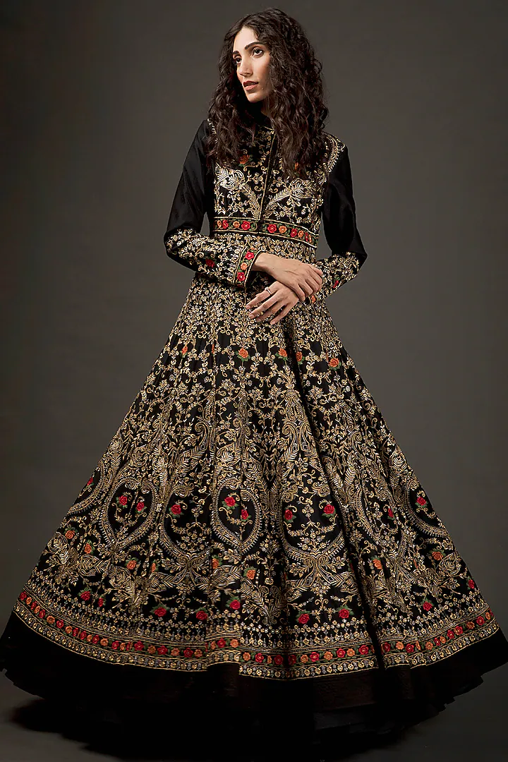 Refined resham embroidery meticulously applied to the bodice and select areas, adding texture and enhancing the overall elegance.