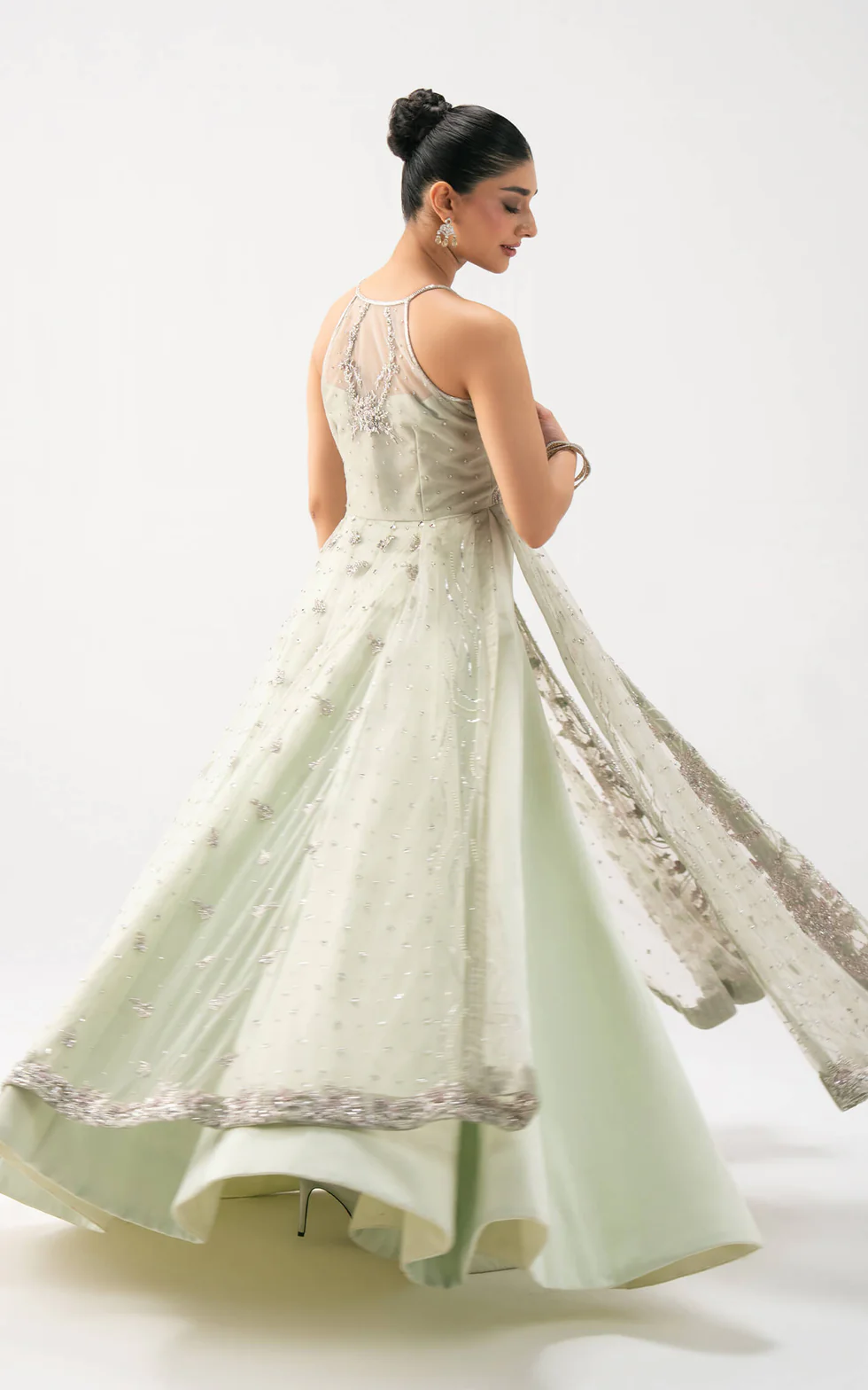 Celestial Aura: Mint Green Heavily Embellished Gown