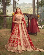 The ensemble includes two beautifully embellished dupattas—one crafted from fine net and the other from organza. Both feature refined detailing and thoughtfully finished borders. Their lightweight textures allow for elegant draping, making them versatile in styling and completing the bridal look with sophistication.