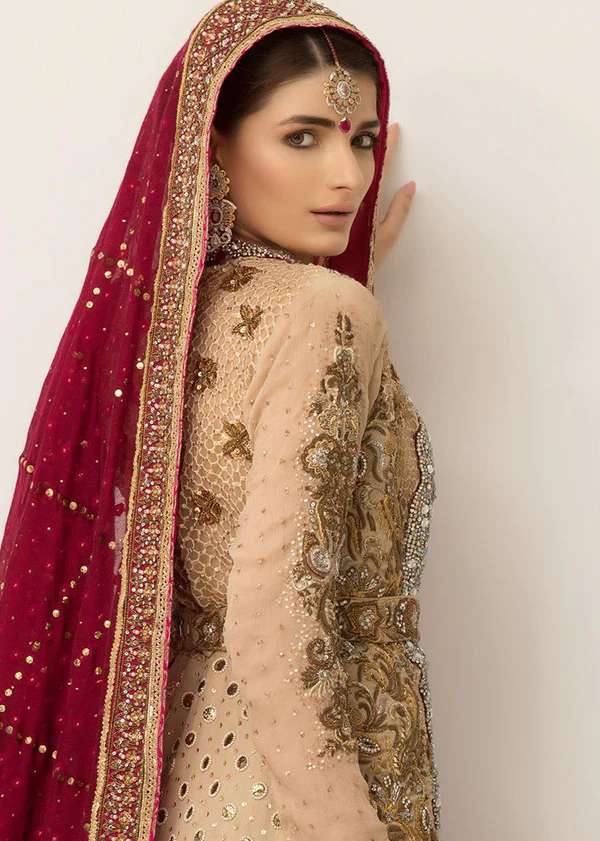 The dupatta is fashioned from lightweight net and finished with pure silk edging. It features sequins aari detailing that adds a soft, ethereal shimmer. The carefully finished borders maintain durability while preserving the dupatta’s delicate flow.