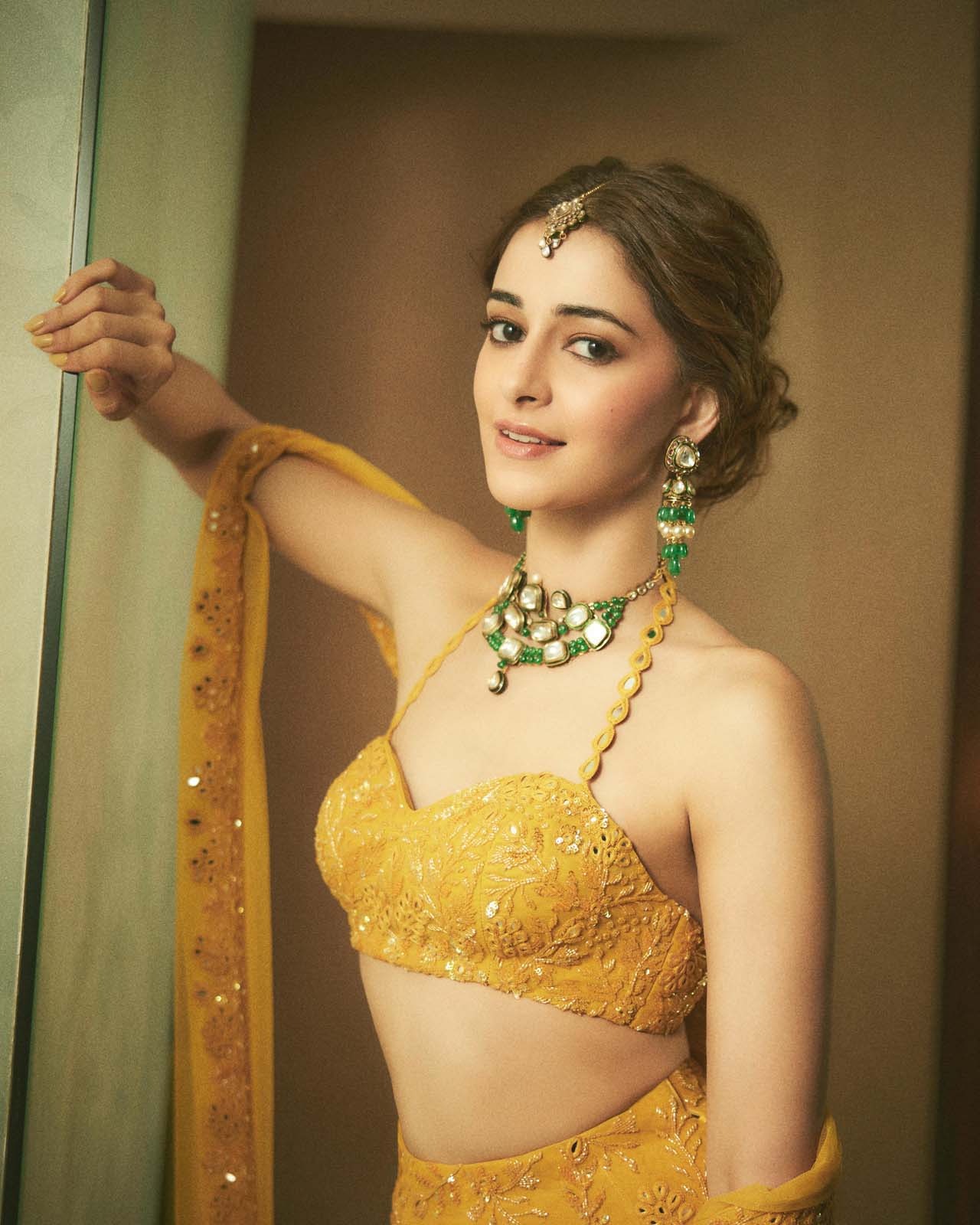 The blouse is crafted in a radiant mustard yellow shade, tailored for a structured yet graceful fit. Intricate hand-applied detailing enhances its surface, creating a rich blend of reflective elements and textured craftsmanship. Its design ensures both comfort and elegance, making it ideal for festive and wedding settings.