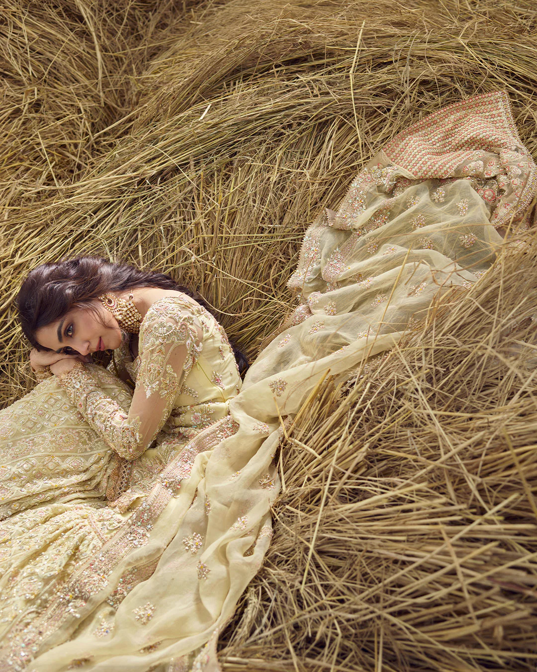 Handcrafted using gota, tilla, kingry, kora, dabka, and pearl detailing. Subtle variations may occur, highlighting the authenticity of artisanal craftsmanship.