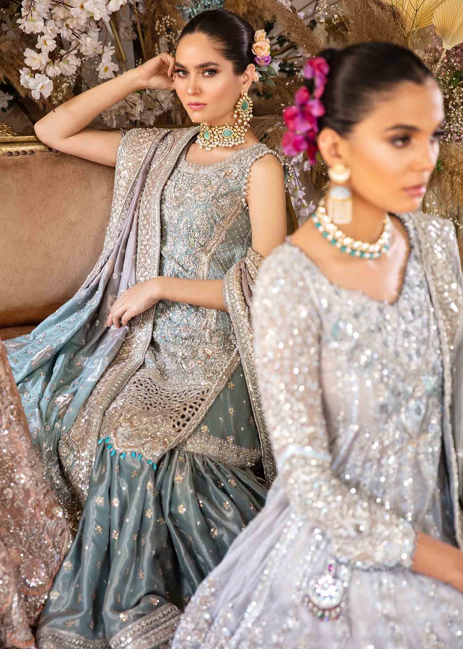 Completely handcrafted using a luxurious mix of sequins, beads, Swarovski crystals, cut-glass touches, kora, naqshi, and tilla embroidery. As this is a bespoke artisanal creation, slight variations may appear, affirming the unique authenticity of the hand-embellishment.