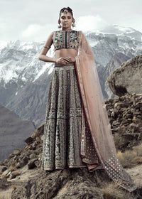 While the ensemble does not include a separate dupatta, the coordinated blouse and lehenga combination creates a complete, striking look for bridal or festive events.