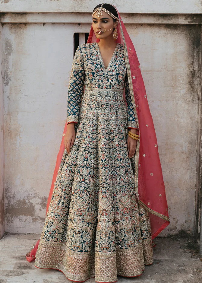Handcrafted embroidery, sequins, and delicate motifs accentuate the gown and dupatta. Slight artisanal variations may appear, reflecting the authenticity of handwork.