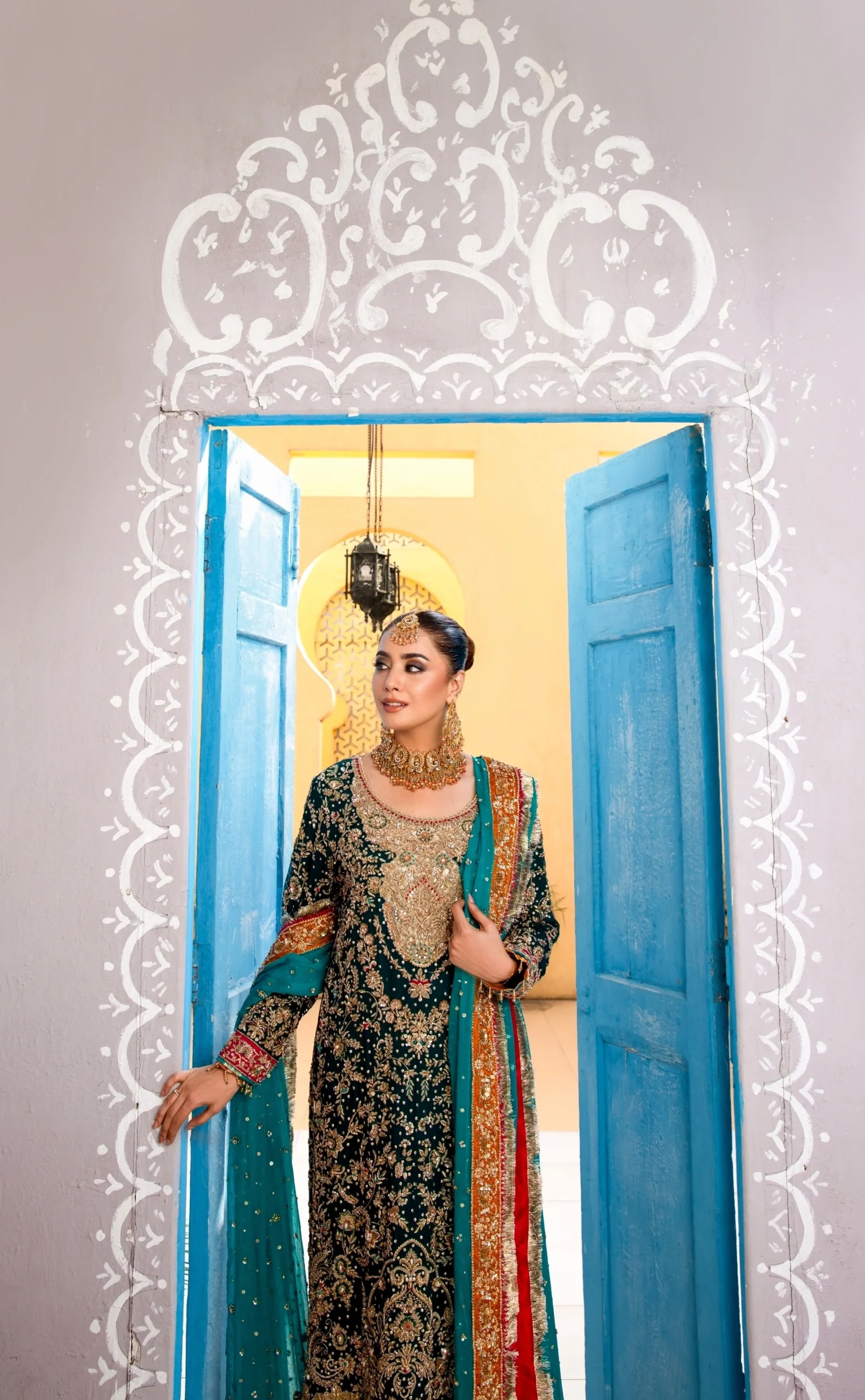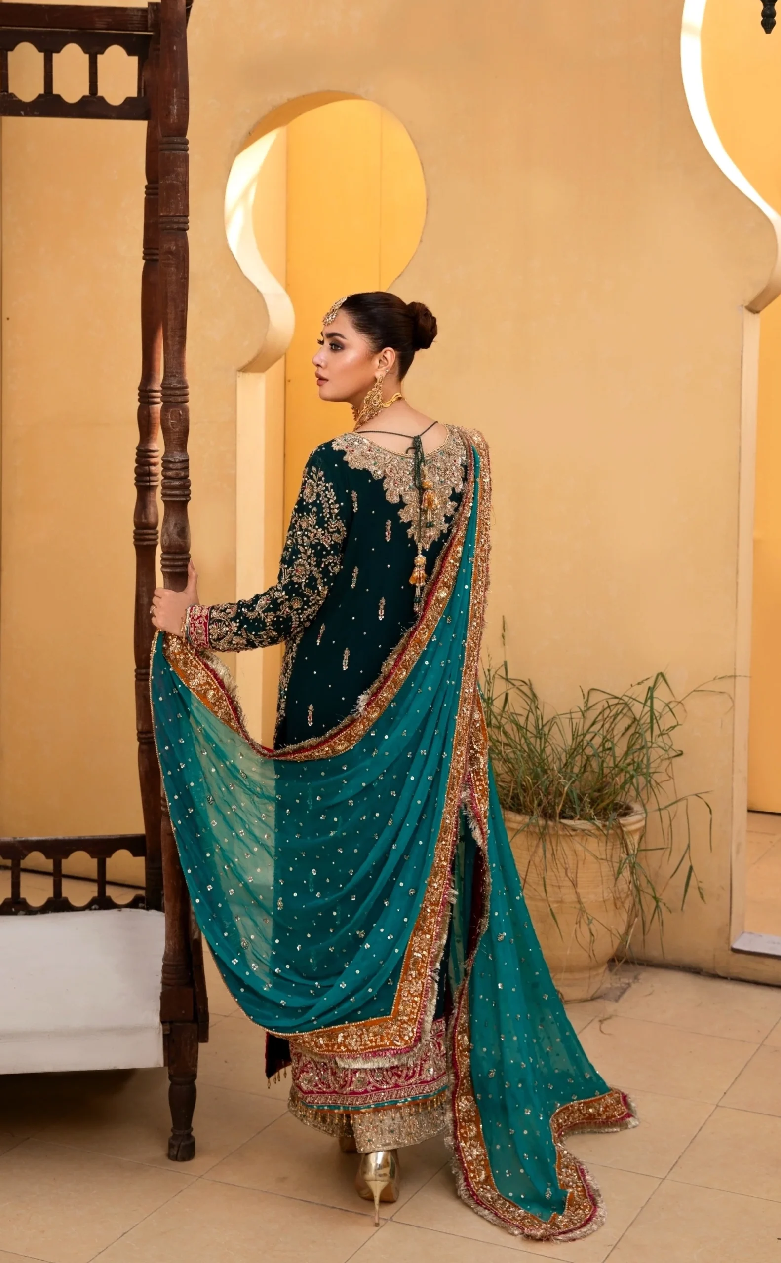 The look is completed with a matching chiffon dupatta that complements the outfit’s fluidity and elegance. Its lightweight texture adds softness and movement, making it perfect for effortless draping.
