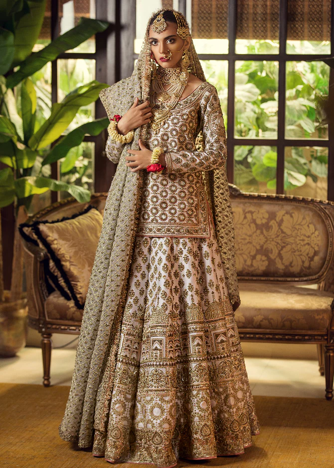 Paired with the outfit is a breathtaking hand-embellished net dupatta, adorned with sparkling sequins, beads, and intricate motif placements that bring soft illumination to the design. Its borders are enriched with detailed work, ensuring a graceful frame around the bride. Light, airy, and radiant, the dupatta adds an exquisite layer of sophistication.