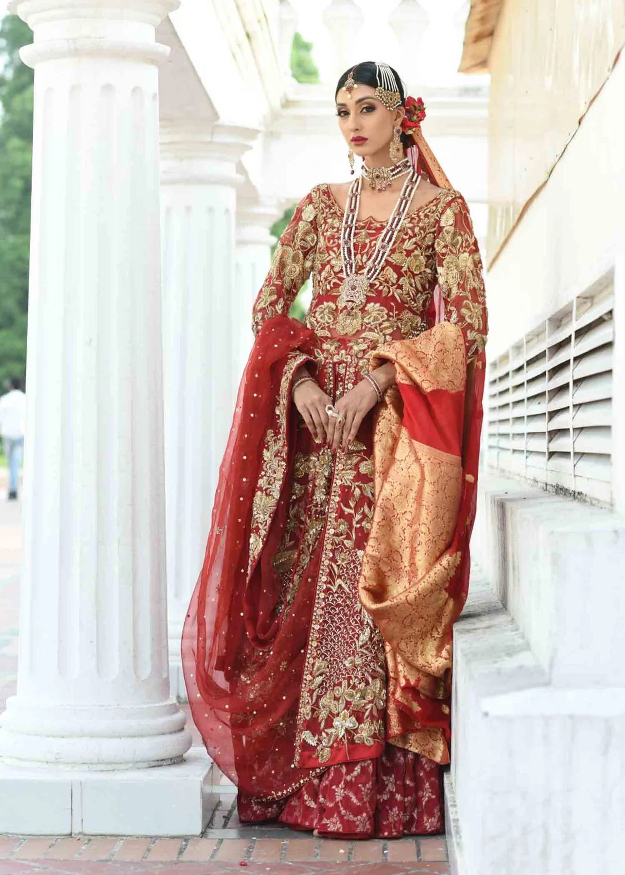 Step into regal elegance with this exquisite red Pakistani bridal ensemble. Featuring a premium organza hand-embellished gown, a voluminous jamawar lehenga, and a beautifully adorned dupatta, this set combines traditional craftsmanship with luxurious detailing for the perfect bridal statement.