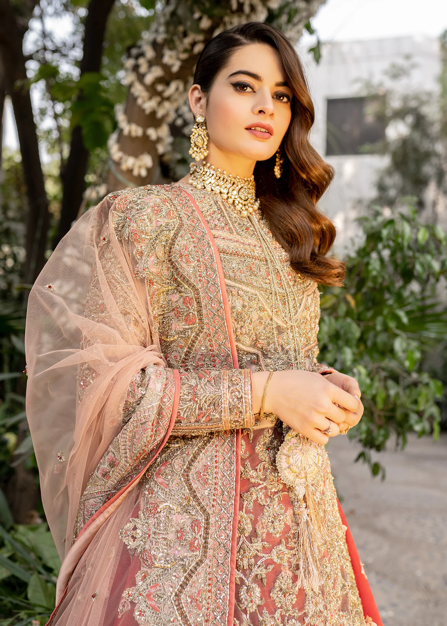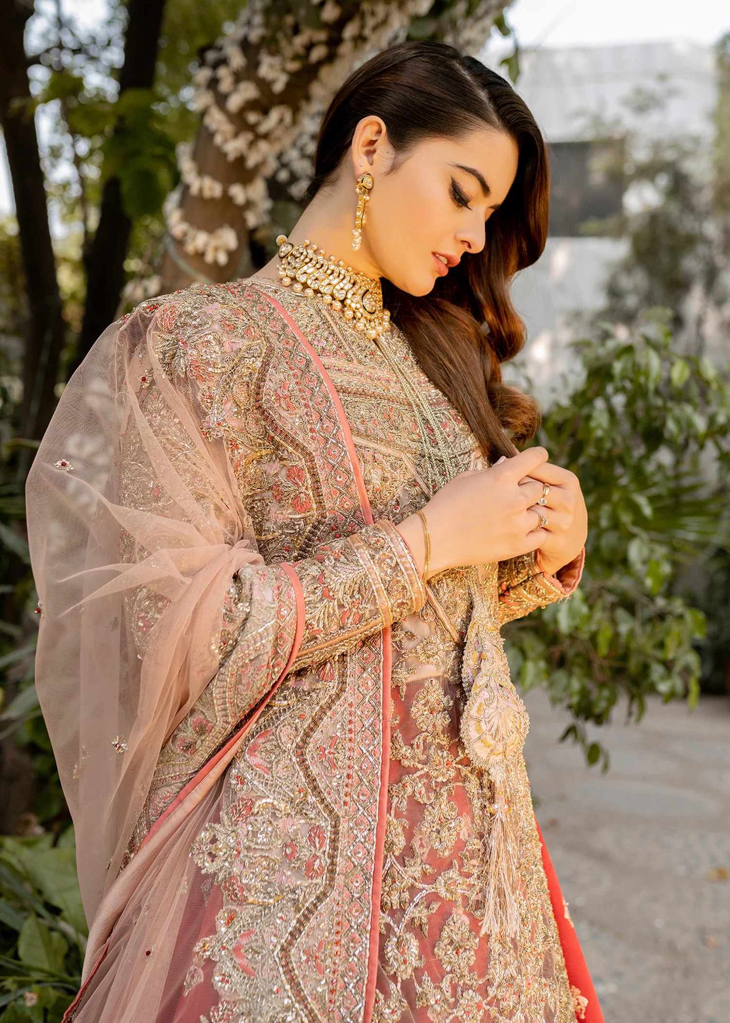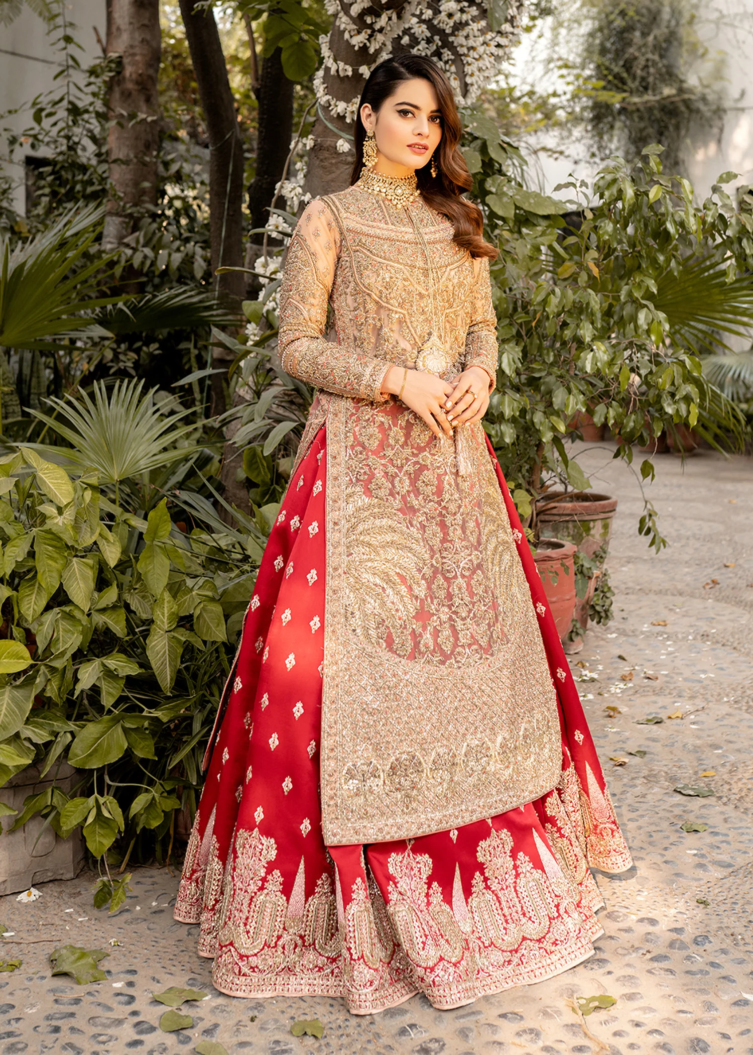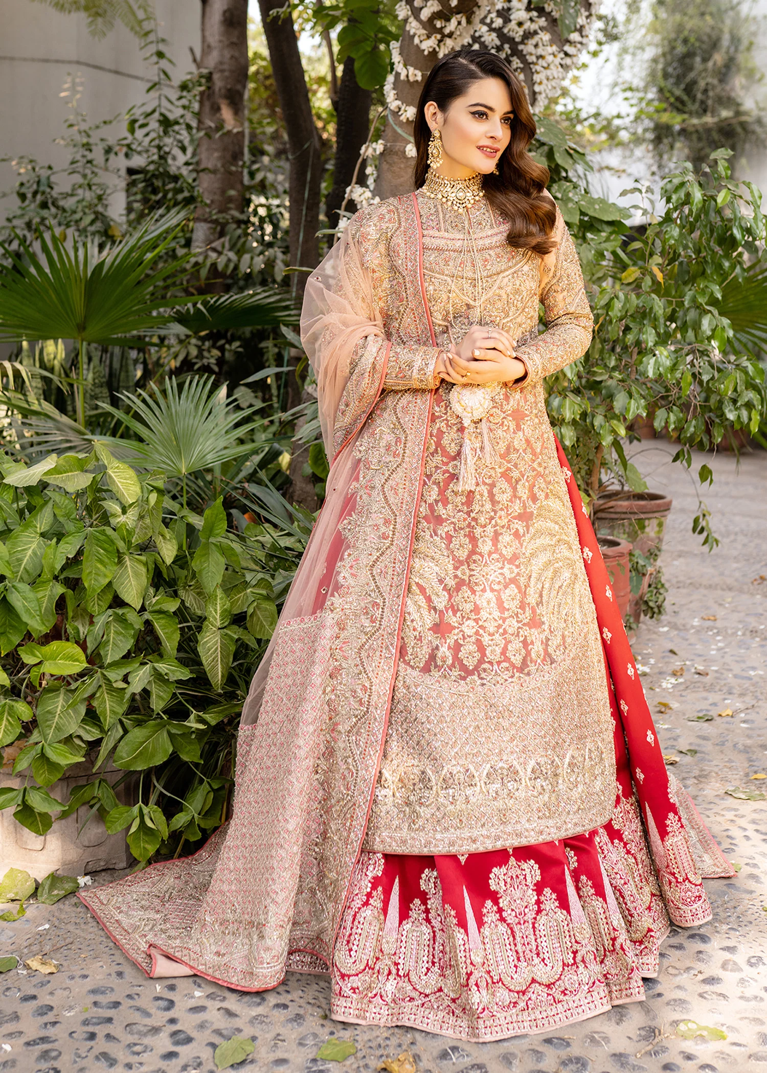 A luxurious bridal lehenga crafted from premium fabrics and adorned with intricate handwork, designed to create a stunning and elegant wedding-day look.