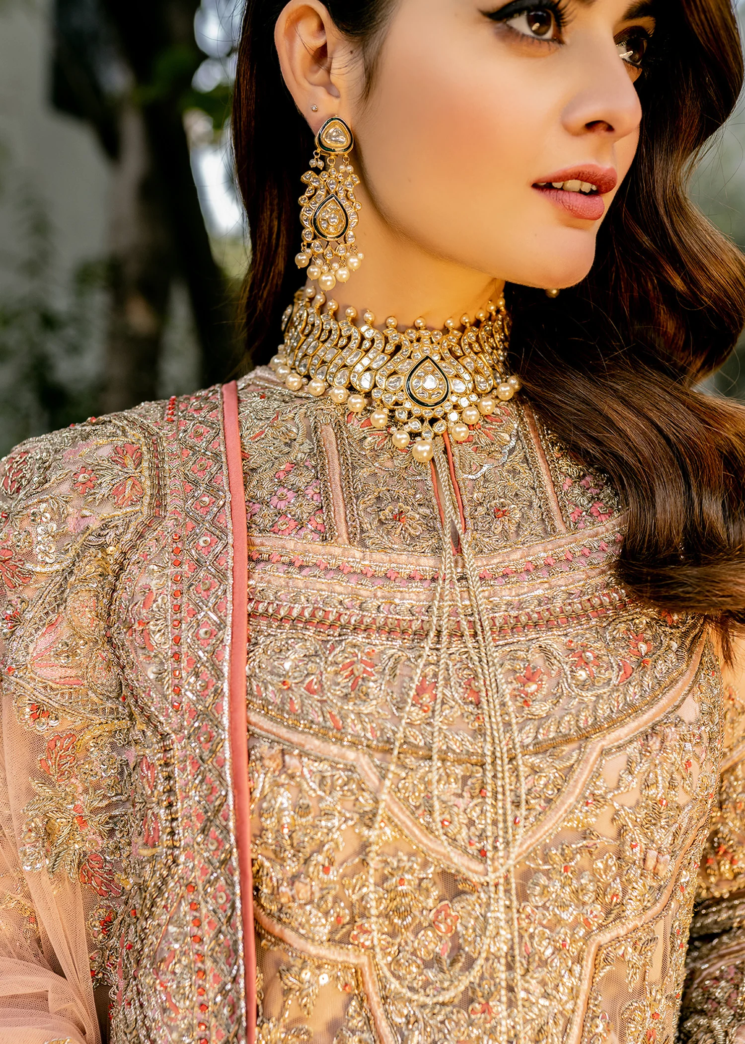 Traditional bridal shades accented with gold and silver embroidery and hand-applied embellishments for a luxurious finish.