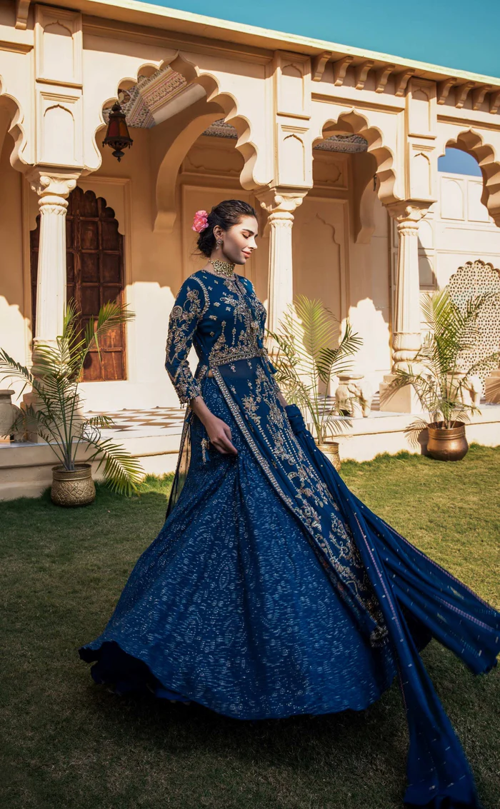 The chiffon dupatta is exquisitely detailed with matching embroidery, pearls, sequins, and crystal accents. Its delicate motifs and soft shimmer add elegance, while finished edges lend structure without compromising its graceful drape.