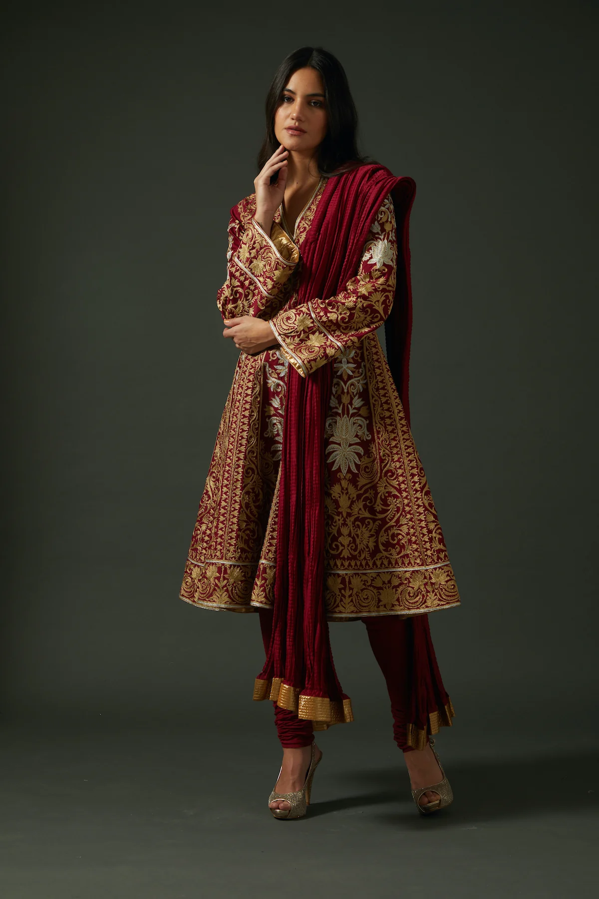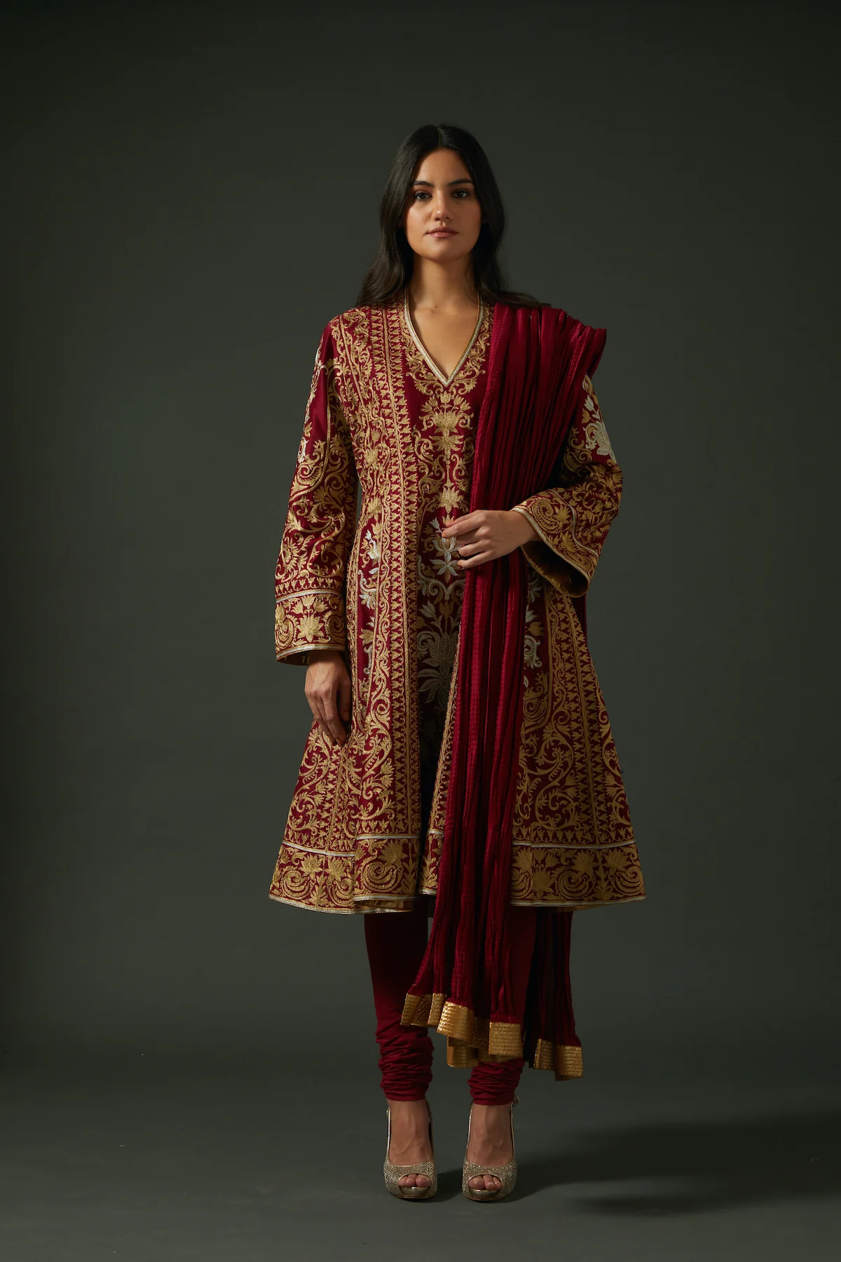 The dupatta complements the set with its lightweight Chanderi fabric and subtle embroidered accents. It drapes effortlessly while maintaining a soft, elegant sheen. Finished edges enhance durability and preserve its delicate flow.